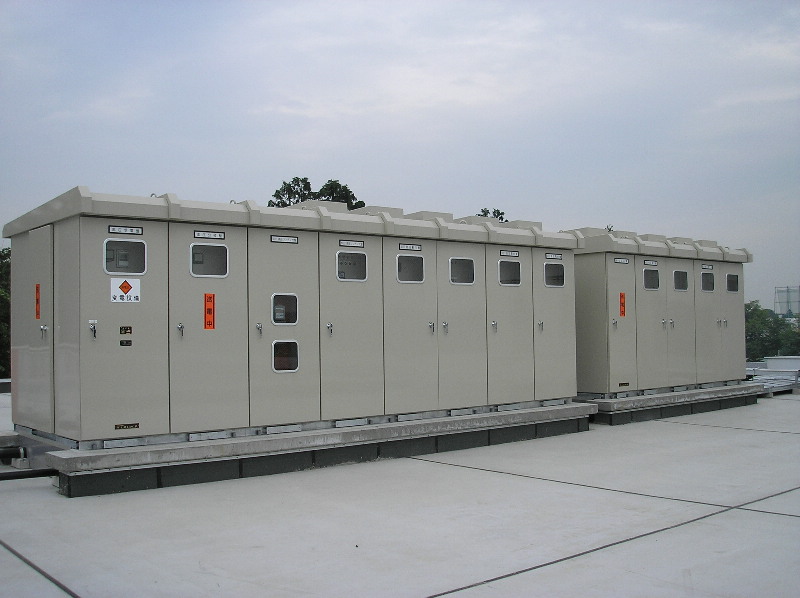 形 容量 認定番号 外形寸法 W D FAN台数 PF-S 150kVA(屋外用) 650号 1700 1800 - CB 150kVA(屋外用) 631号 2000 1900 - PF-S 300kVA(屋外用) 279号 2600 2000 - CB 300kVA(屋外用) 316号 2700 2100 - CB 300kVA(屋内用) 1147号 2800 2000 - CB 500kVA(屋外用) 296号 3400 2100 - CB 750kVA(屋外用) 590号 4900 2200 3 CB 1000kVA(屋外用) 592号 4900 2200 4 CB 1500kVA(屋外用) 1148号 6600 2000 5